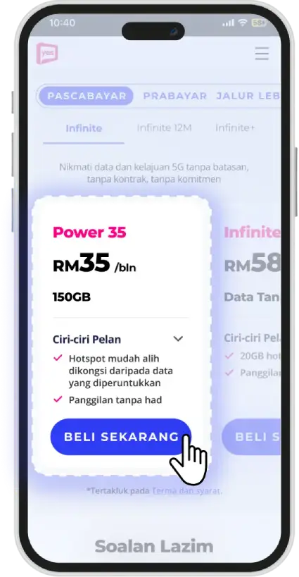 Pilih kontrak 12 bulan untuk penjimatan hebat dan nikmati pelan 5G tanpa batasan dari hanya RM38/bulan!