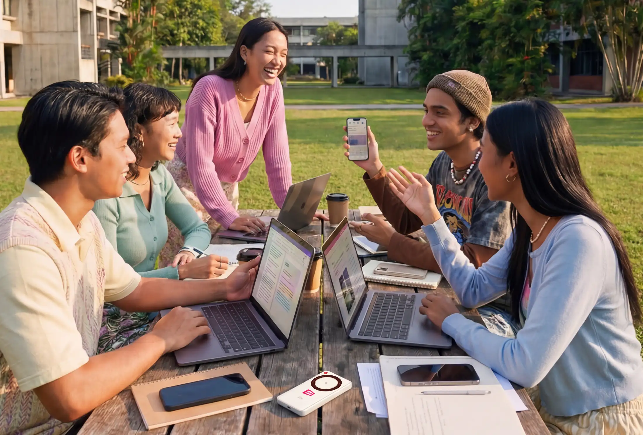 Skip the slow public WiFi. Connect up to 10 devices to make group assignments feel like a breeze – whether on campus or off.